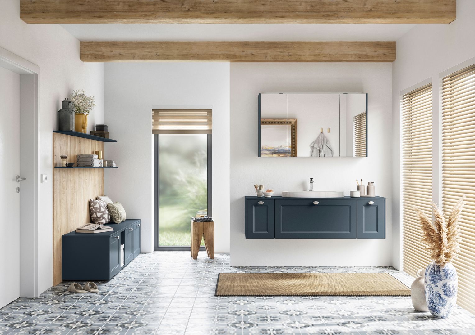 Das Badezimmerlicht sollte nach Möglichkeit freundlich sein. Denn wenn einen das eigene Spiegelbild nicht nur unausgeschlafen, sondern auch bis ins letzte Detail ausgeleuchtet am Morgen begrüßt, dreht man am liebsten gleich wieder um. Für einen guten Start in den Tag ist daher eine ausgewogene und stimmungsvolle Beleuchtung vorteilhaft. Sie sorgt außerdem für ein freundliches Wohlfühlambiente und ideale Lichtverhältnisse. Eine extra Wandlampe oder eine dimmbare Spiegelleuchte machen da bereits einen großen Unterschied.