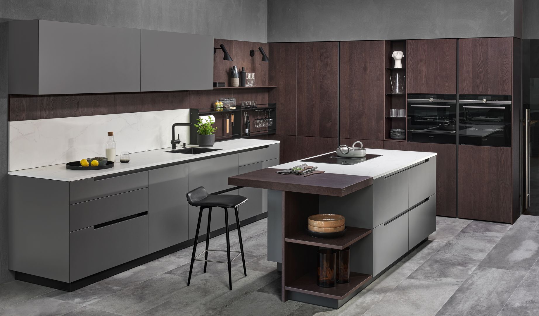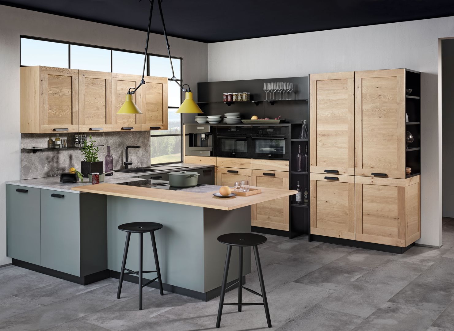 Die Frische von Gemüse und Obst findet sich in zahlreichen Grüntönen wieder sowie in zahlreichen Elementen aus Flora und Fauna. Bei den persönlichen Gestaltungsideen sind der Fantasie keine Grenzen gesetzt. Individualität wird großgeschrieben, jeder kreiert sein eigenes Küchenkunstwerk. Aber so wie die Begeisterung für gute Weine immer mehr Liebhaber um sich schart, steigt auch der Mystik- und Glamourfaktor im Küchenstyling. Beton und Industrial-Design gesellen sich deshalb zu verspielten Elementen. Während der Purismus in der Linienführung für Bodenhaftung und klare Strukturen sorgt, gibt die farbliche Gestaltungsfreiheit Freiraum für eigene Kreativität.